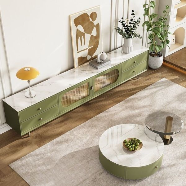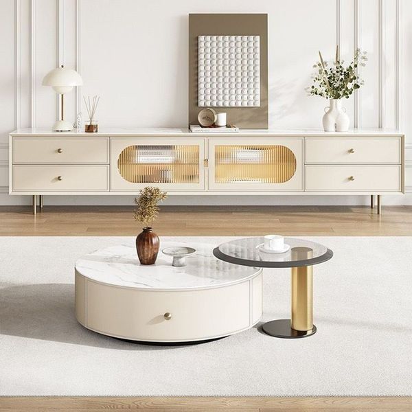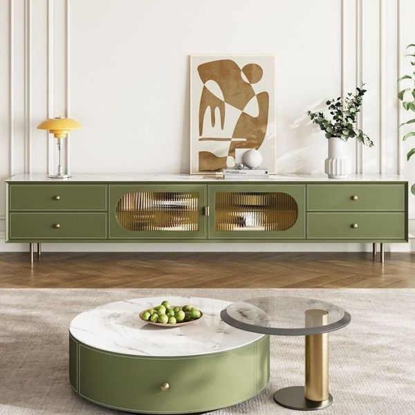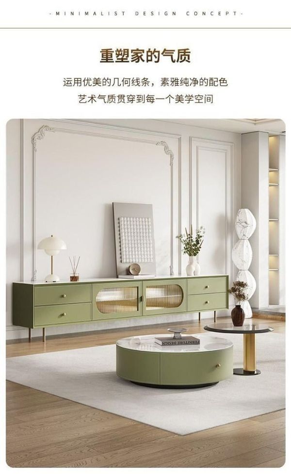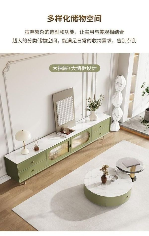 實木 法式 馬鞍皮 岩板 電視櫃 茶几組合 現代簡約 電視機櫃 客廳 法式地櫃 coffee table TV cabinet