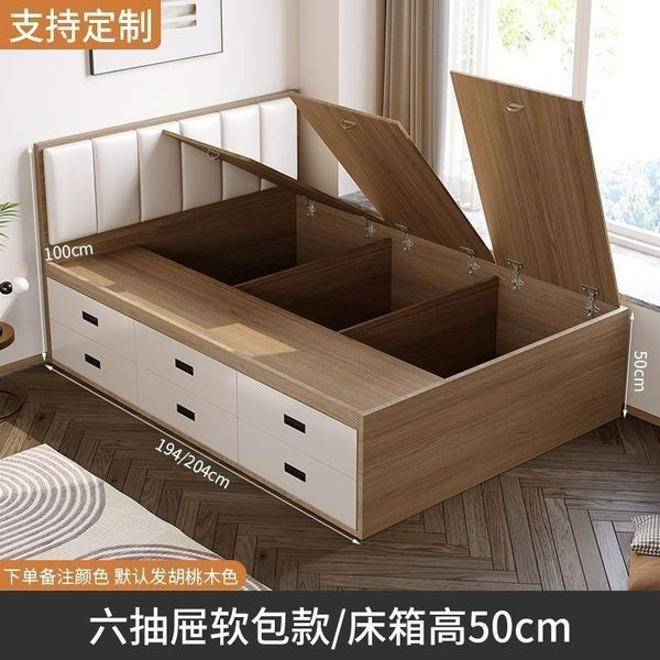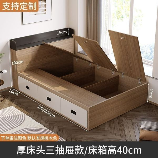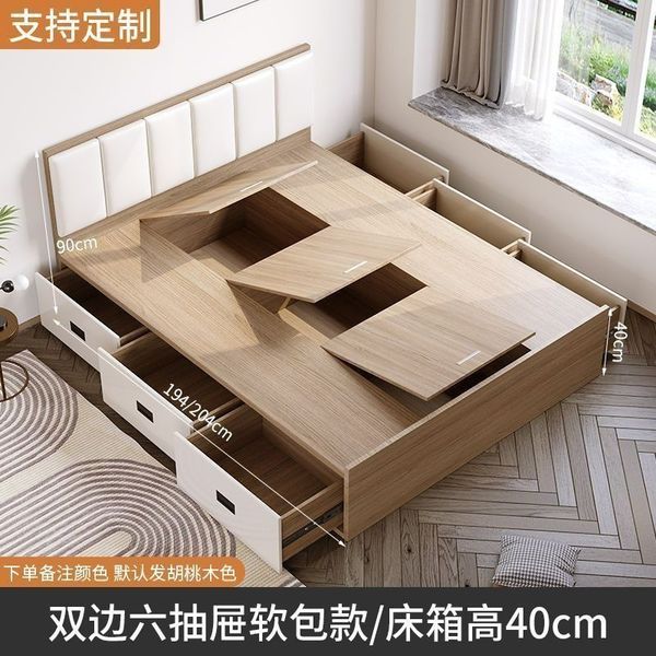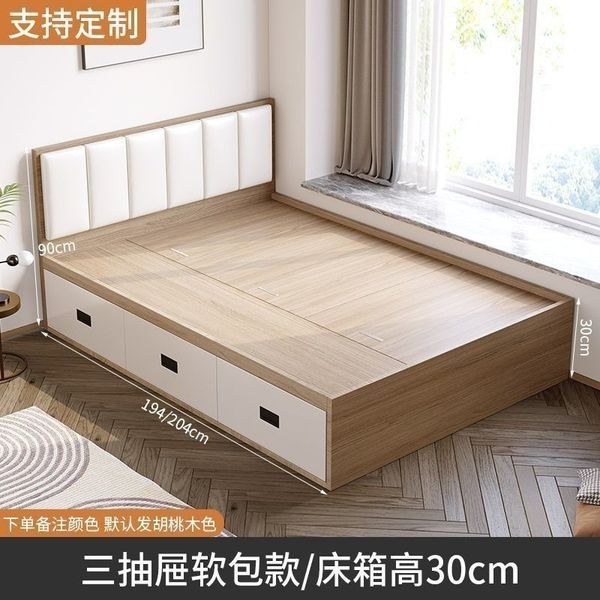 床 現代簡約 榻榻米 省空間 收納 儲物抽屜床 可定制 板式 踏踏米 單人床架