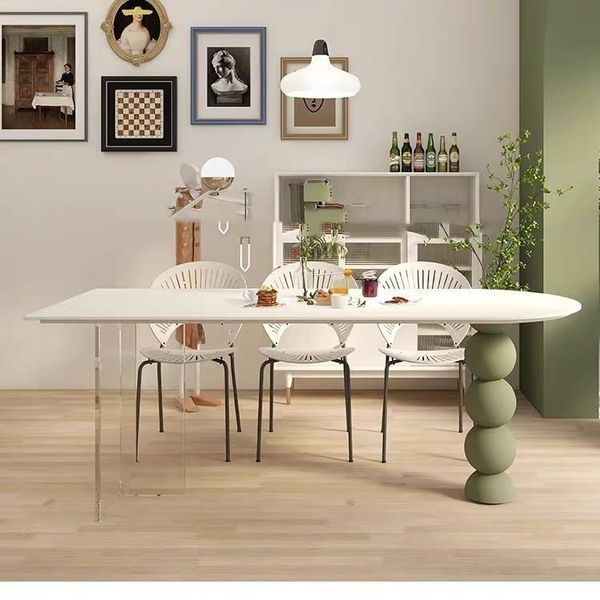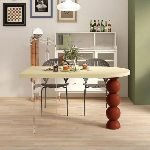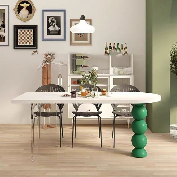 北歐 實木 亞克力 懸浮 奶油風 簡約 半圓 島臺 餐桌 輕奢 小戶型 家用 飯桌子枱 SUAR