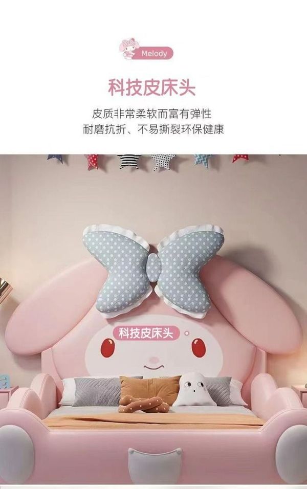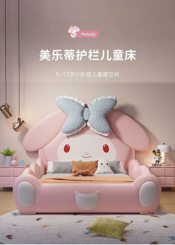 兒童床 女孩 可愛公主床 卡通 美樂蒂 簡約現代 帶護欄 滑梯 實木 單人床