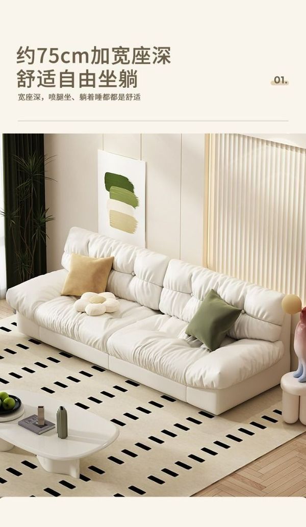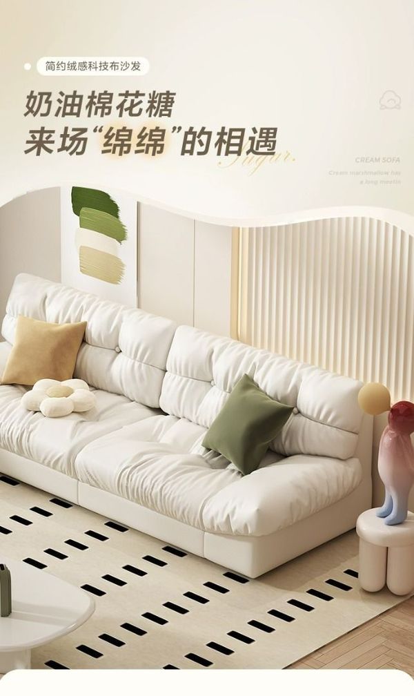 雲朵沙發 梳化 小戶型 忌廉風 布藝沙發 客廳 sofa意式 現代簡約 三人比特 直排 慵懶風