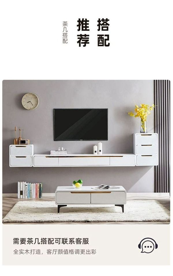 壁掛式 電視櫃 全實木 掛牆 懸浮 小戶型 輕奢 白色極 簡懸 空懸掛 電視機櫃
