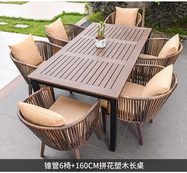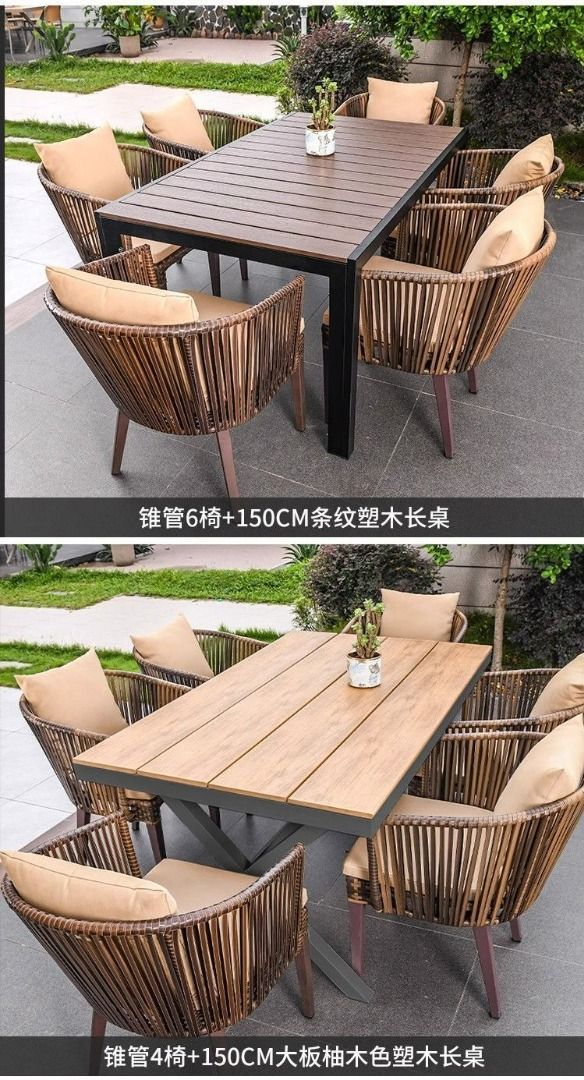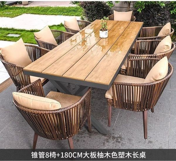 戶外桌椅別墅庭院花園桌椅休閒露臺籐椅塑木桌組合室外編藤桌椅