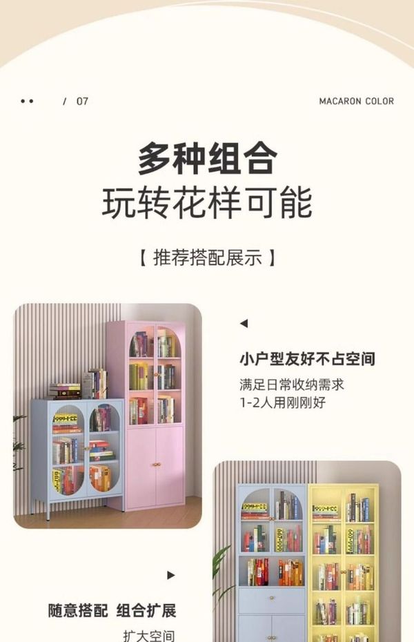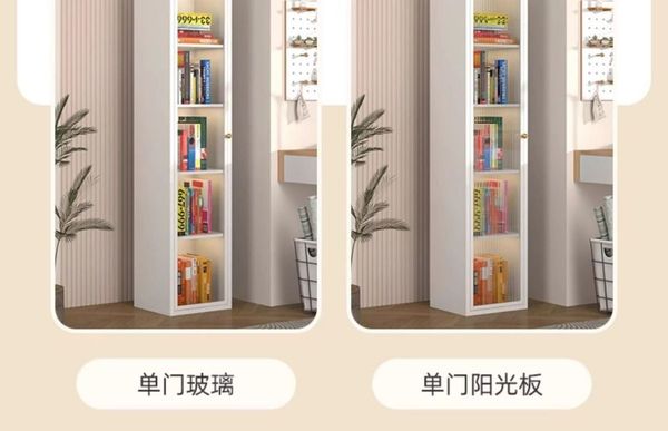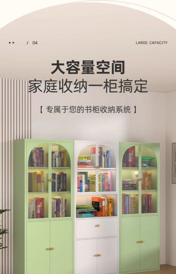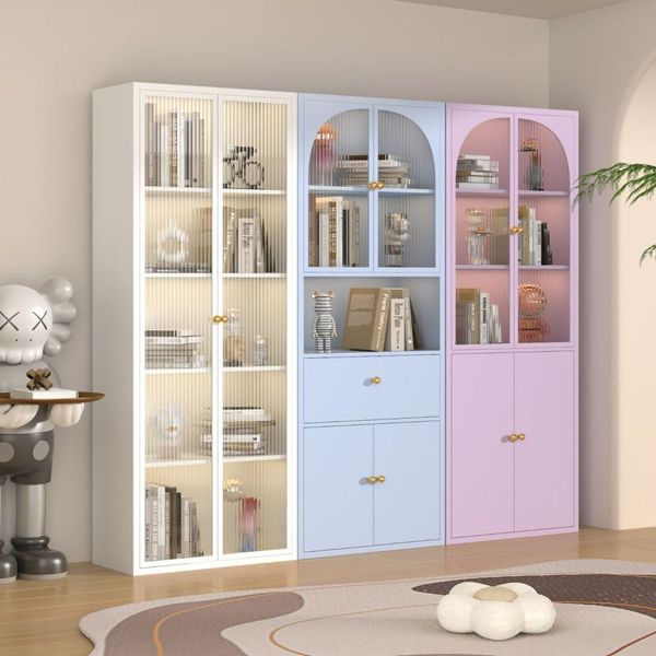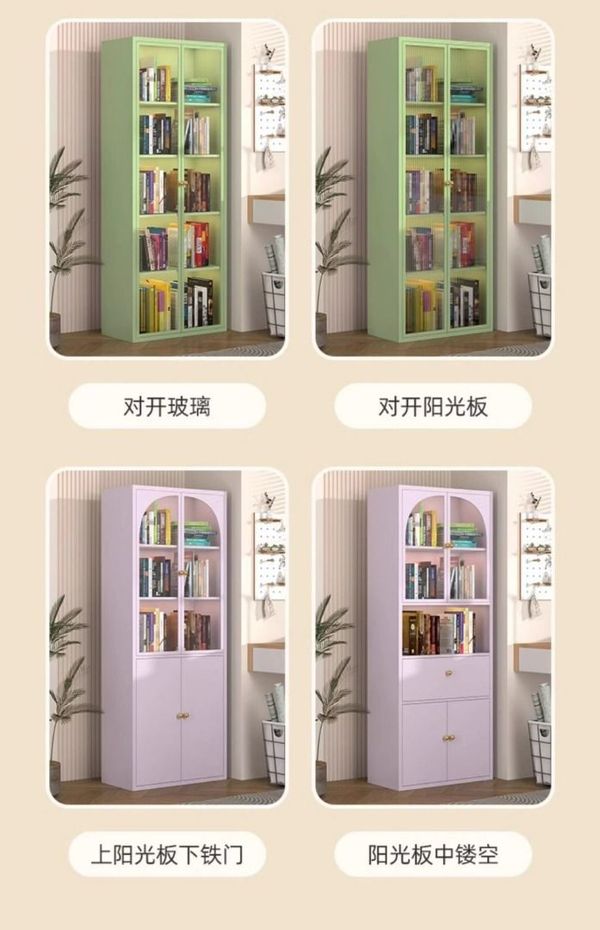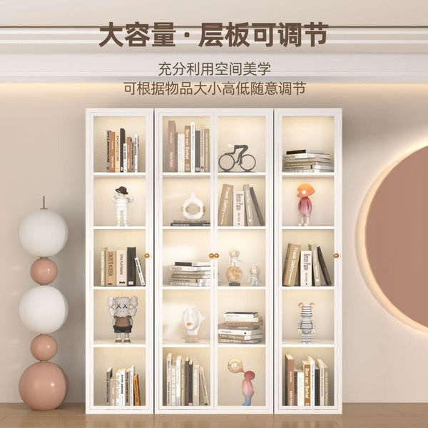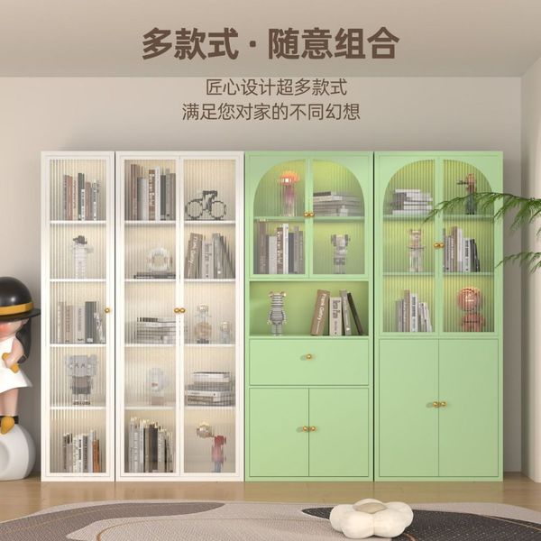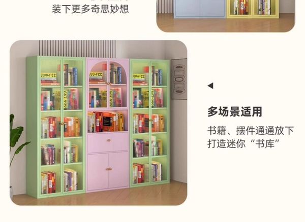 _鋼制書櫃防塵玻璃門書架鐵藝兒童儲物櫃客廳家用小矮櫃收納展示櫃