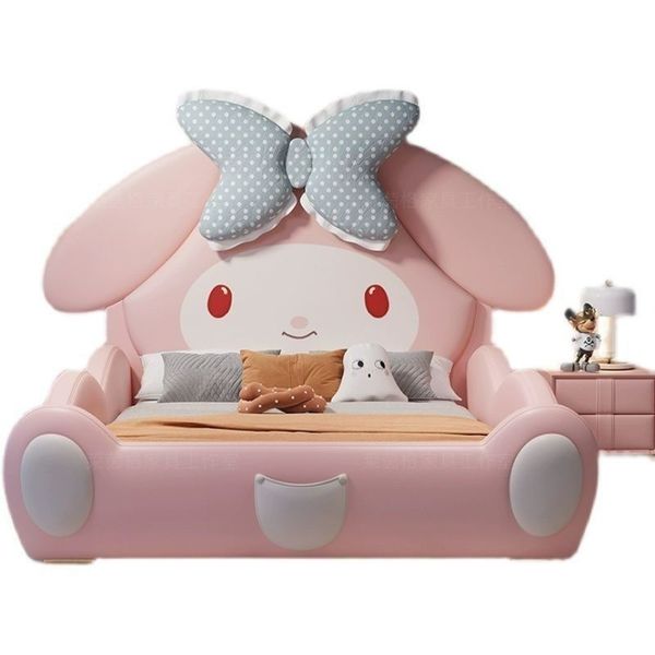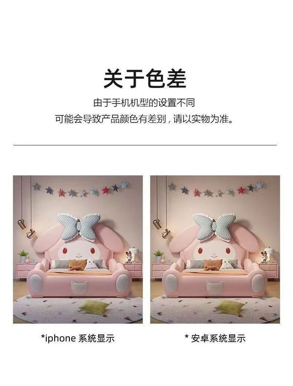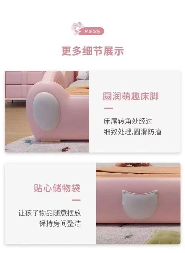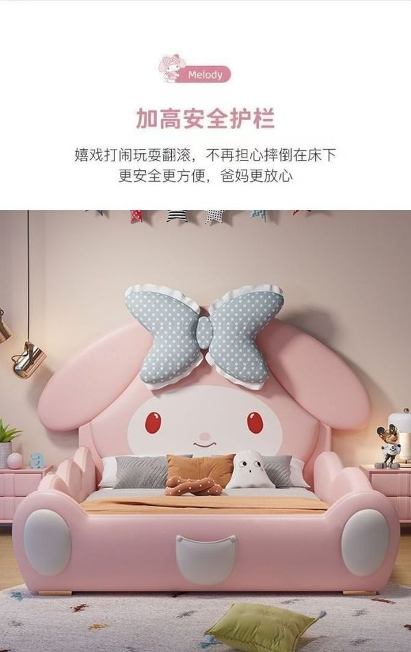 兒童床 女孩 可愛公主床 卡通 美樂蒂 簡約現代 帶護欄 滑梯 實木 單人床