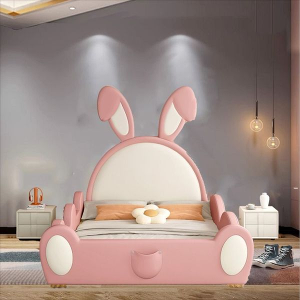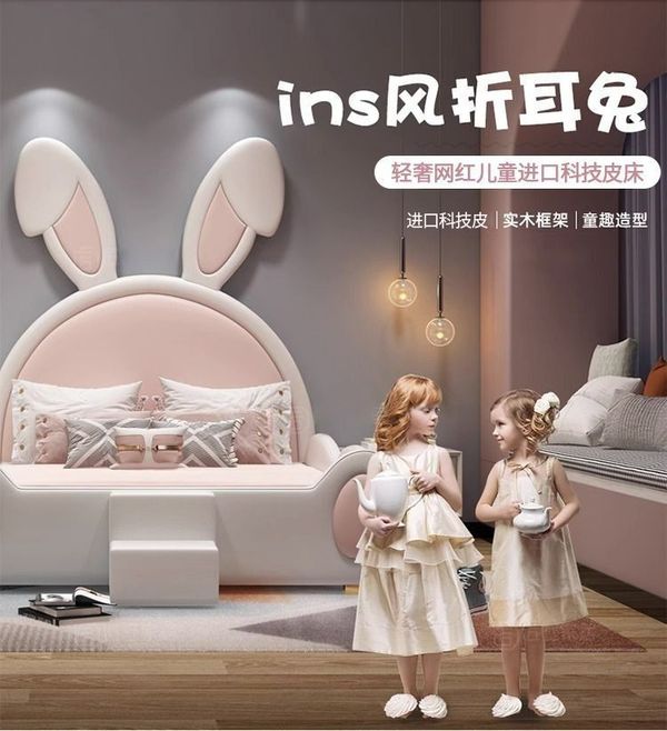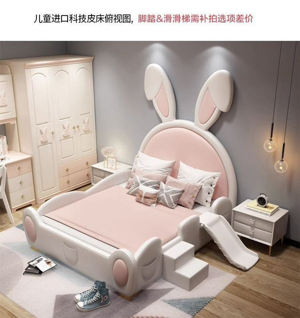 公主床 女孩 帶護欄 帶滑梯 兒童床 兔子床 實木單人床 卡通可愛 帶儲物