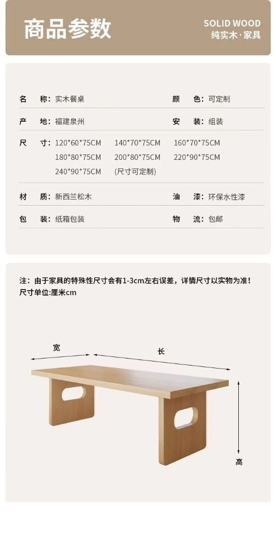 長Lengthx闊Width高Height 松木單桌240x90x75x5cm_ $3710