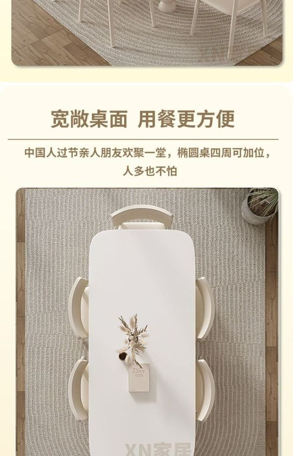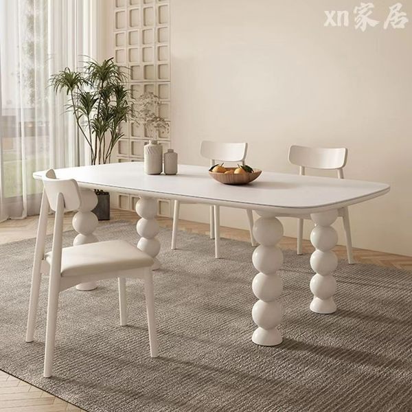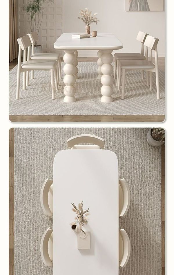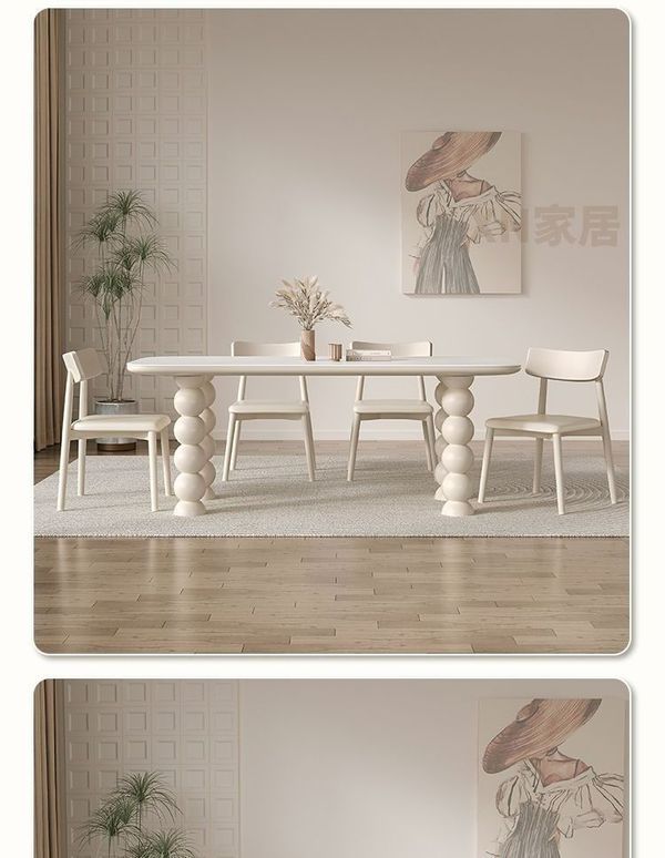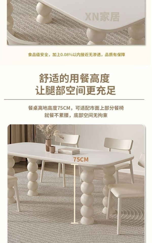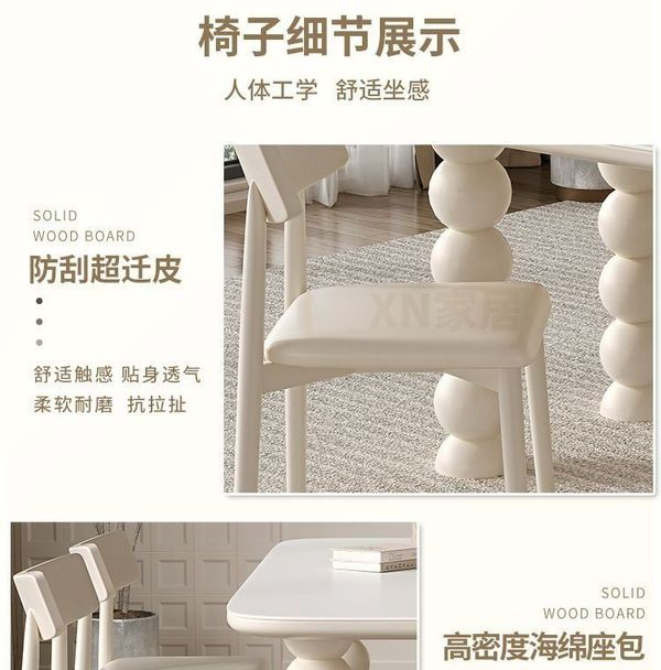 法式 忌廉風 岩板 餐桌椅組合 家用 小戶型 現代簡約 輕奢 長方形 實木飯桌枱 SUAR