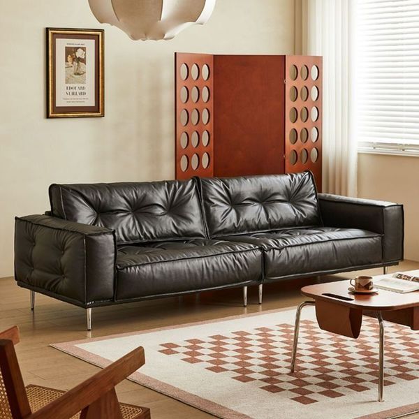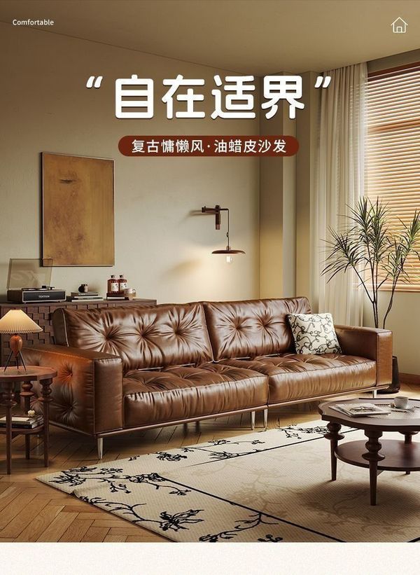 北歐風 復古 油蠟皮 小戶型 直排 中古風 三人豆腐 塊法式 客廳 休閒沙發