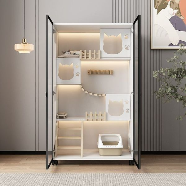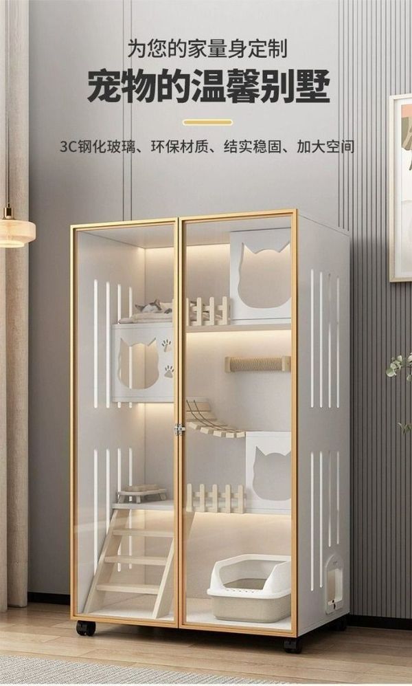 猫別墅 猫籠子 家用 室內 猫窩 猫屋 超大 自由空間 猫咪房子 實木 猫舍 猫櫃