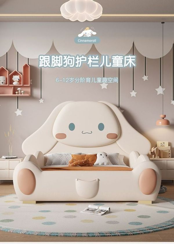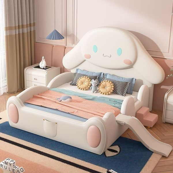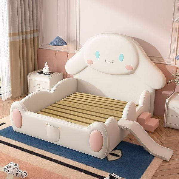兒童床 女孩卡通 公主床 可愛跟脚狗床 頭滑梯床 護欄床 實木 單人床