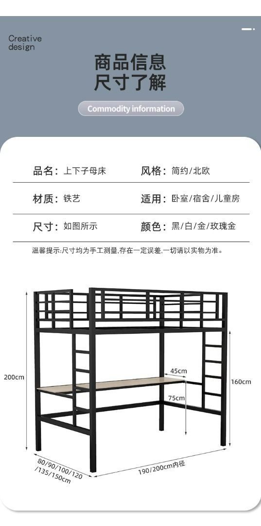 🌟 ️ 床下空间高度/总高/围栏都可自定义尺寸(超长会有另外收费)