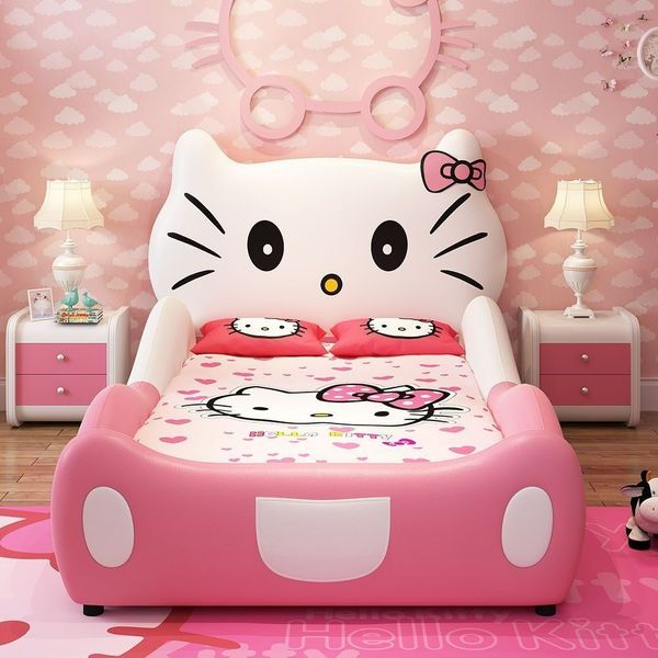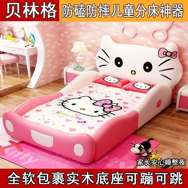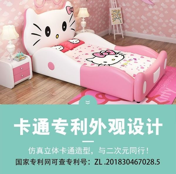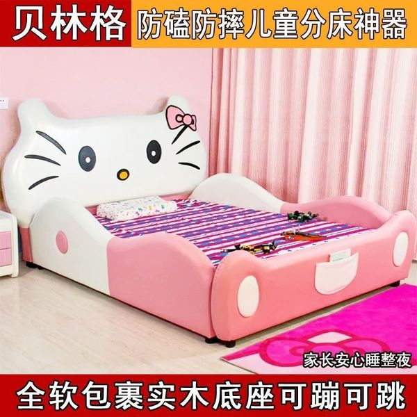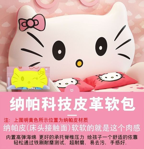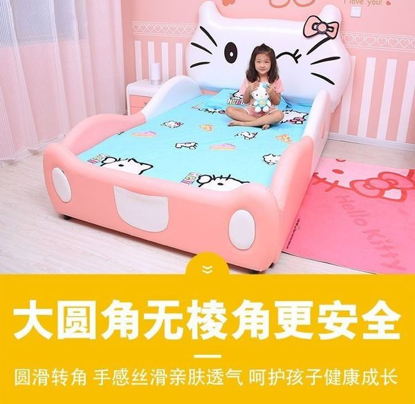 兒童床 女孩 單人床 公主卡通 乖乖猫 創意 帶護欄 學生 真皮 臥室床 定制