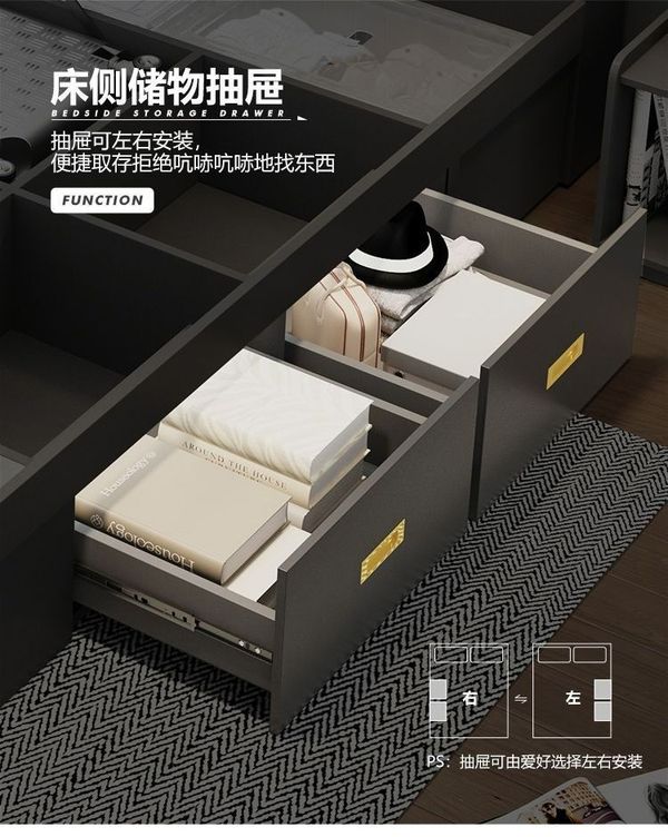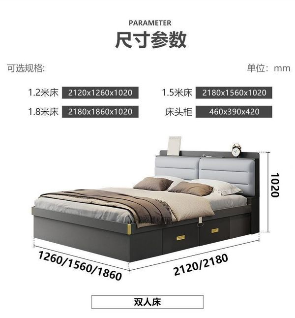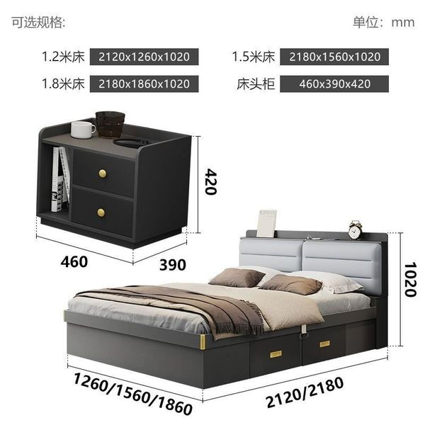 长Lengthx阔Width高Height 储物床+床头柜x1_1200mmx1900mm_气压结构_ $2490