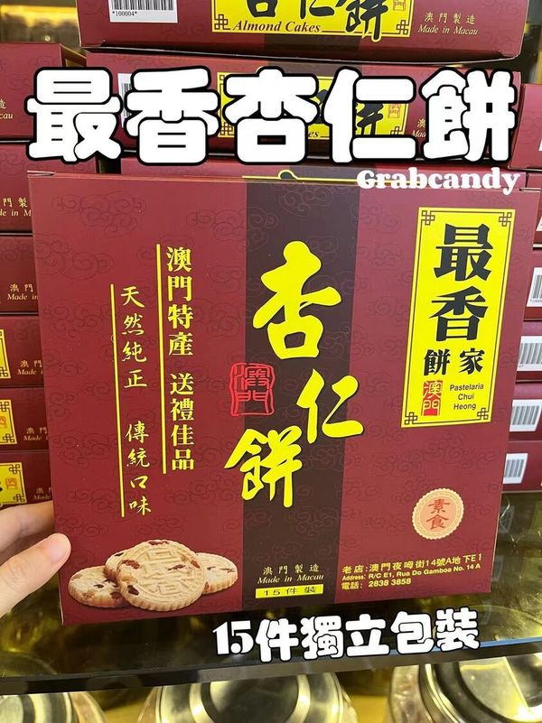 澳門最香餅家 - 炭燒原粒杏仁餅 15件裝禮盒 獨立包裝