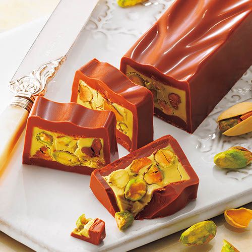 長條形設計,約14cm長,可以好似蛋糕咁切成一件件食用 ~ 牛奶朱古力+開心果奶油+粒粒開心果,開心果奶油香濃濃郁,混合滿滿嘅深烤開心果及鹹開心果,口感十分豐富,開心果控一定會愛上!