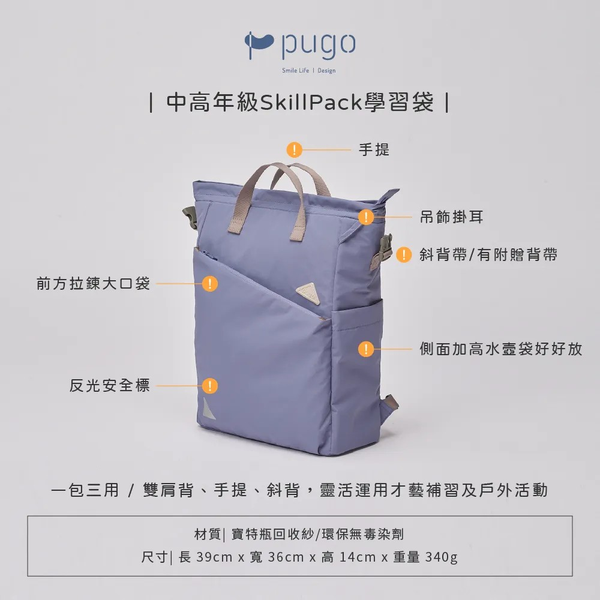 PUGO | 上課小幫手 | SkillPack學習袋 | 背包 | 背嚢 | 戶外 | 4IN1