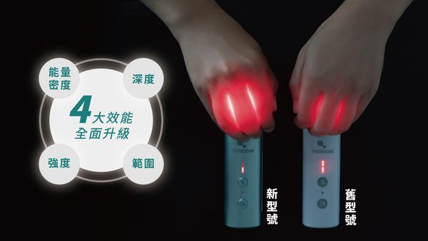 A: 美天復康寶(升級版) 使用了雙波長脈衝技術,由兩種特定醫用波長信號組成,對比市面上的紅光或者遠紅外線按摩器普遍使用單一波長技術,而且並非使用特定醫用波長數值。市面上普遍紅光產品,只發出可見的紅光,而遠紅外線的光是看不見的,所以他們使用的並不是遠紅外線,只是紅光。此外,我們光的能量密度根據醫療標準設計,達到專業臨床級水平,並且有更強的組織穿透能力。