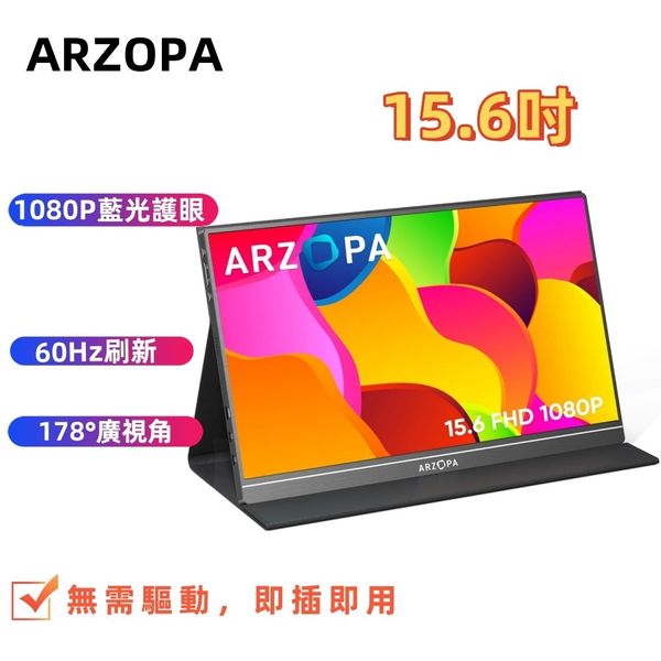 ARZOPA-A1 Gamut 15.6' IPS 1080P FHD 護眼超薄便攜式顯示屏 | 筆記型電腦、手機、PS5、PS4、SWITCH、Xbox直連 贈送磁吸皮套