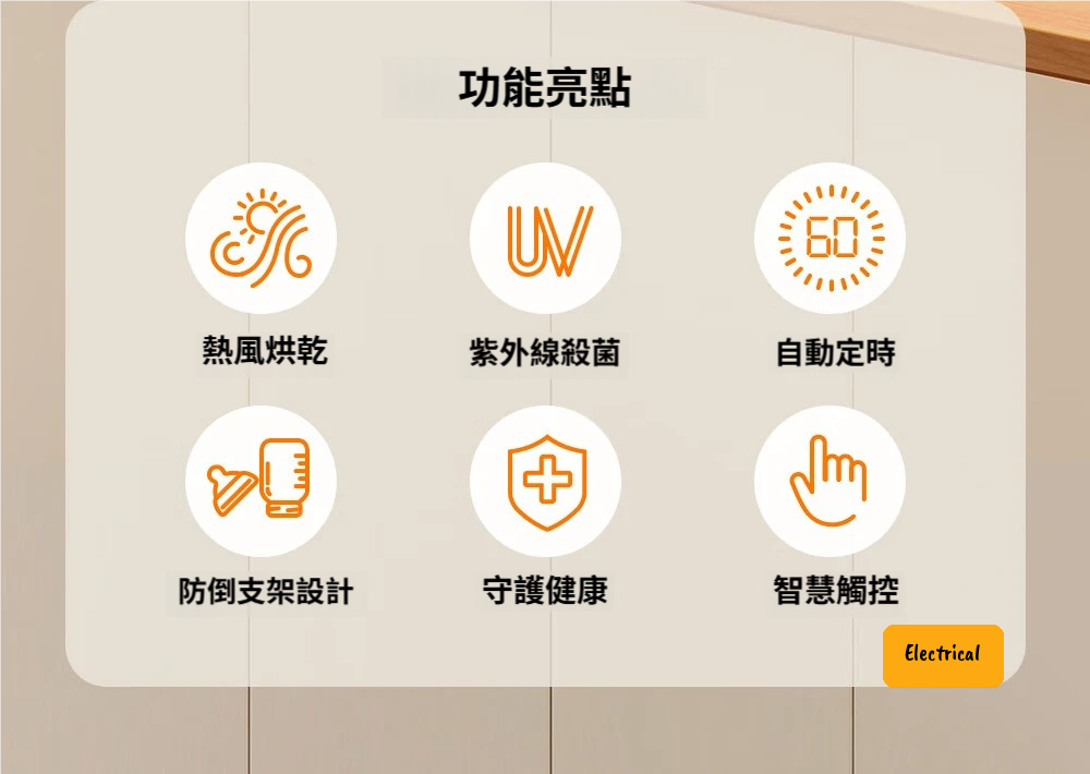 - 一鍵自動殺菌烘乾:合上蓋子即可啟動,操作超簡單