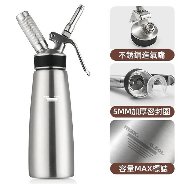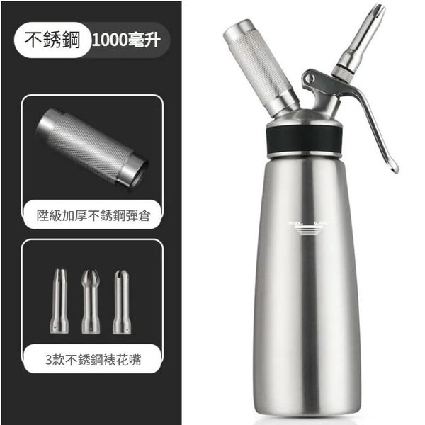 全城熱賣-食品級不鏽鋼奶油槍 奶油發泡器 1L 送裱花嘴