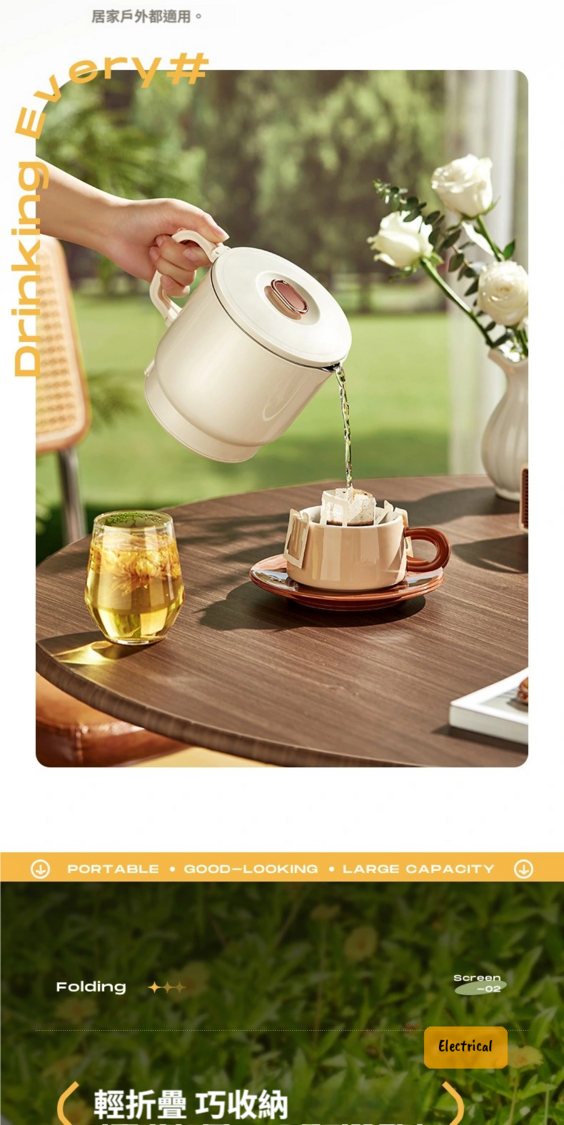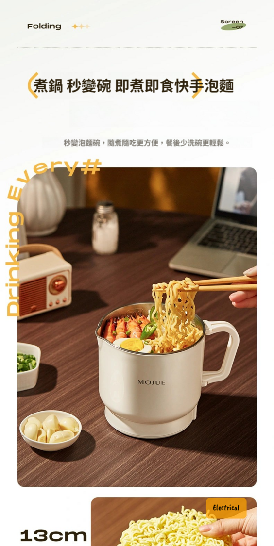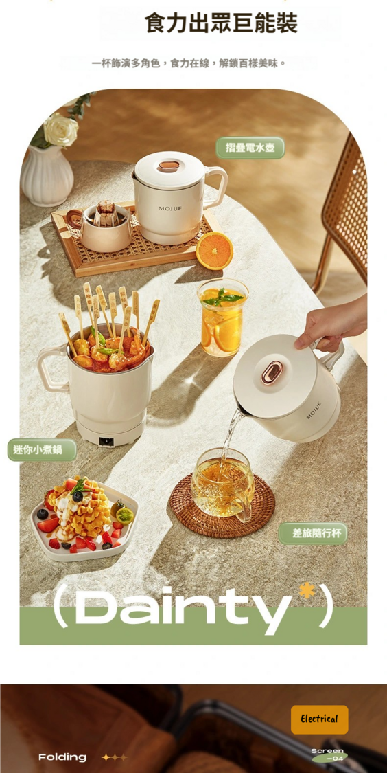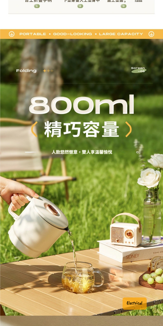 日本暢銷-MOJUE摺疊電熱水壺|800ML大容量|兩檔調溫|旅行煮食壺三合一