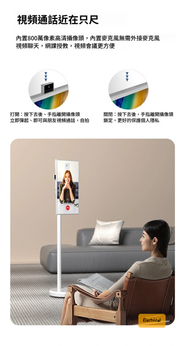 - 鏡頭:內置800萬像素高清鏡頭,可開關保護私隱