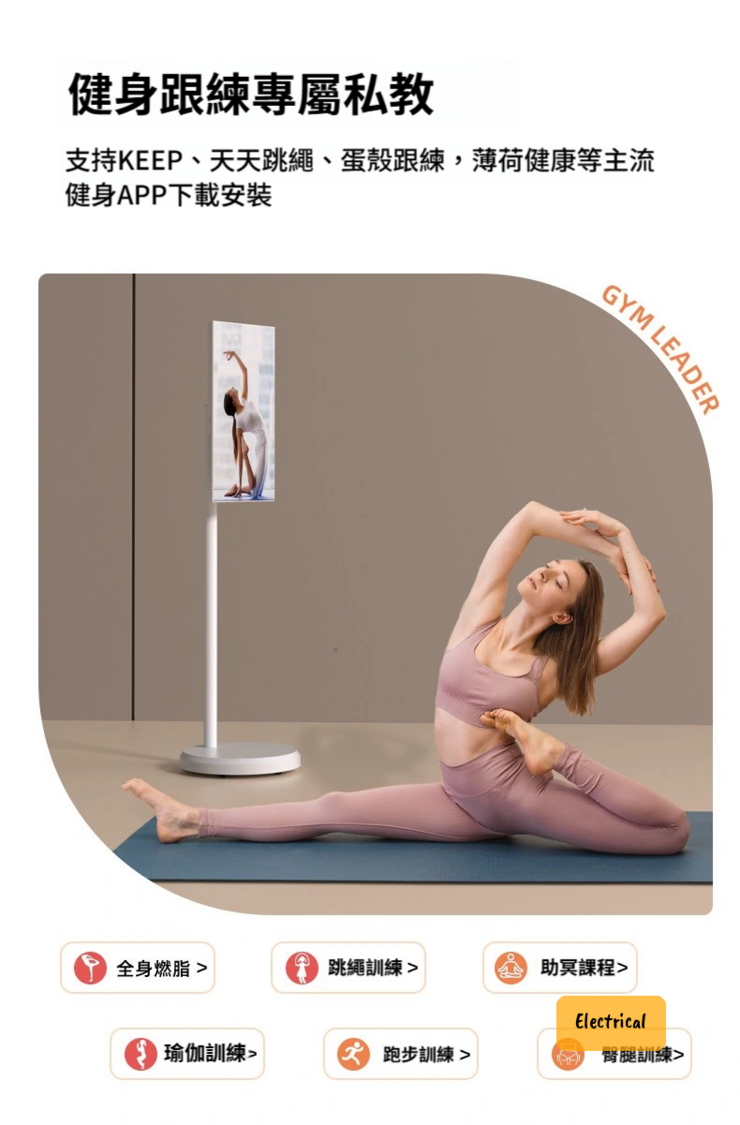 - 十點電容觸控屏,操作靈敏,支援KEEP、天天跳繩、蛋殼跟練等健身APP,做運動好輕鬆。