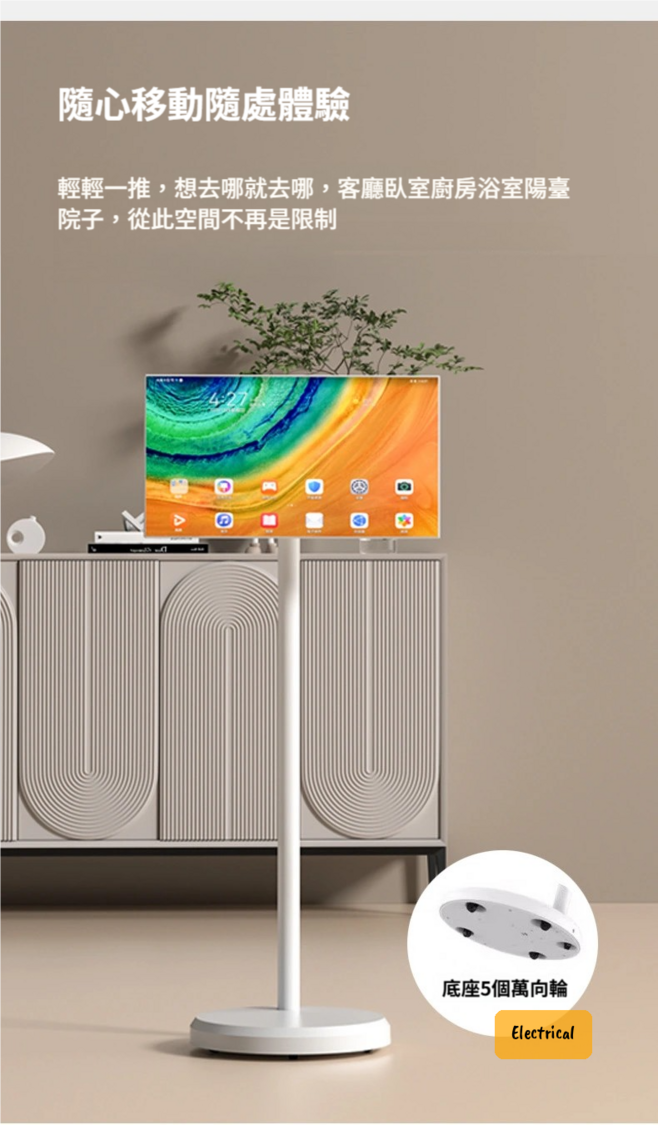 - 底座有5個萬向輪,輕輕一推就去到客廳、睡房、廚房、浴室甚至戶外,慳位又實淨。