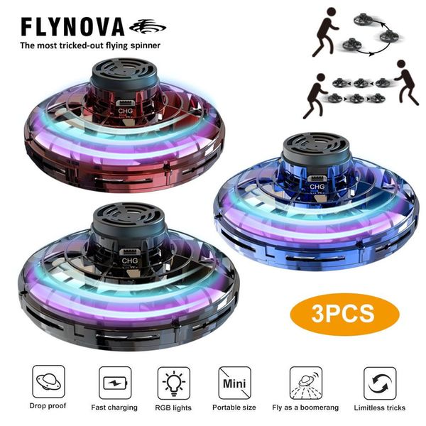 FLYNOVA-FLYNOVA 迴旋陀螺 電動感應玩具 迴旋飛行器 創意解壓 帶有360°旋轉和發光RGB LED燈的USB充電迷你飛碟 3個裝