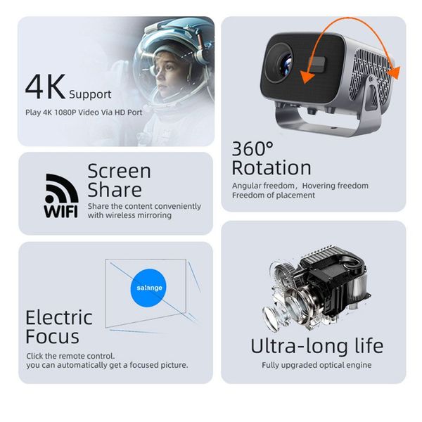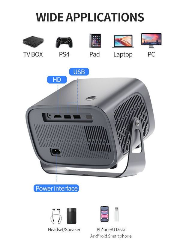 安裝:為了滿足不同位置的安裝要求,WiFi電影投影機支援您透過三腳架放置在平坦的桌子上或懸掛在天花板上。