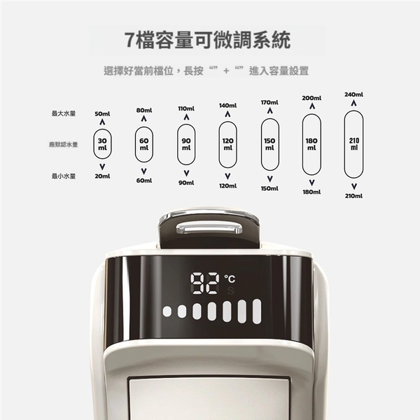 - 7段水量調節(30-180ml),濃淡自己話事