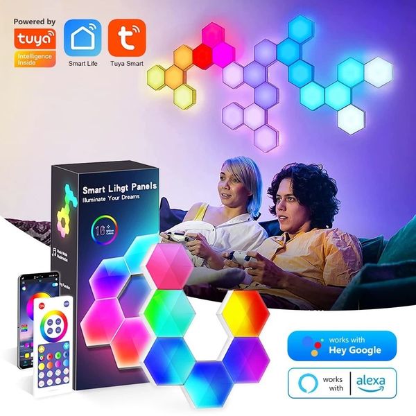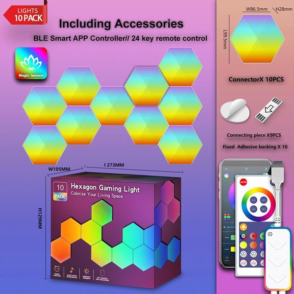 全城熱賣-智能蜂窩裝飾氣氛燈 - 10個裝 | RGBIC 漸變幻彩燈效 | 音樂燈效閃爍 | app連接控制
