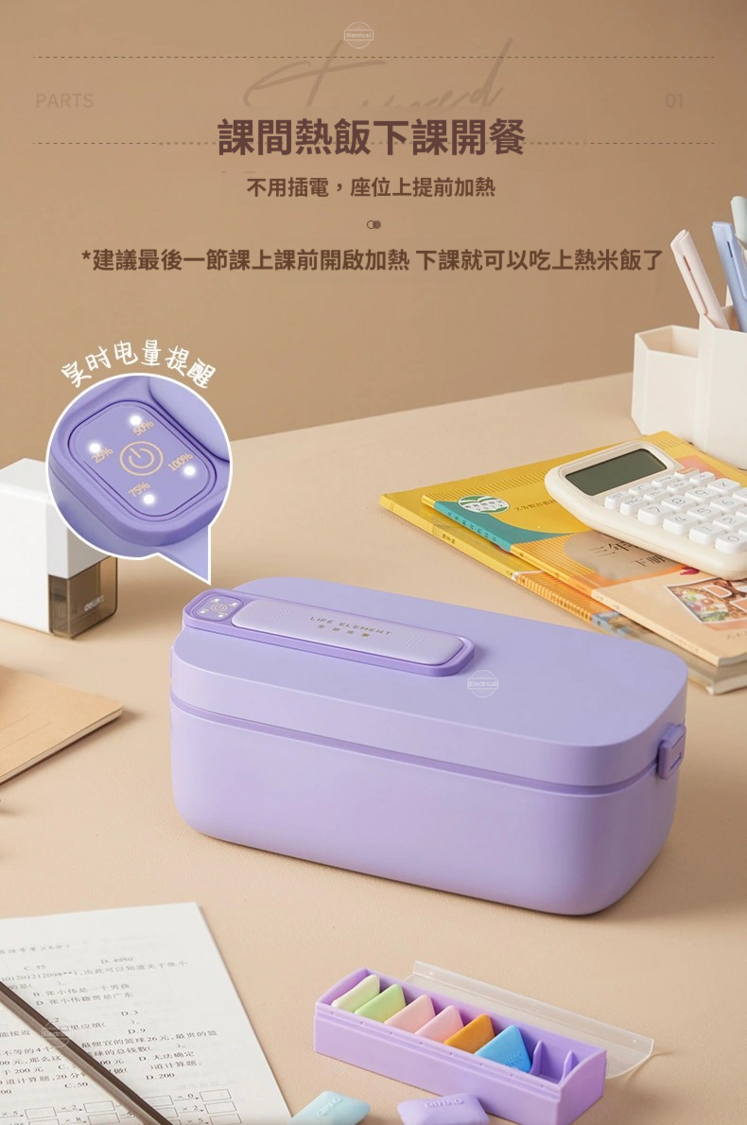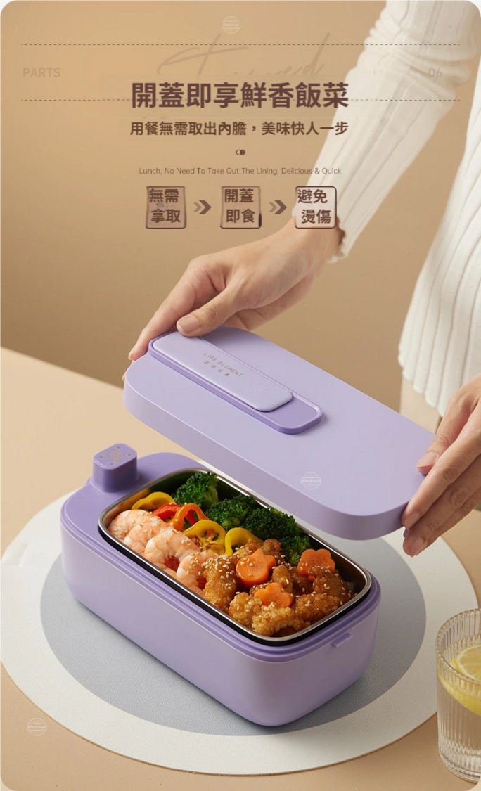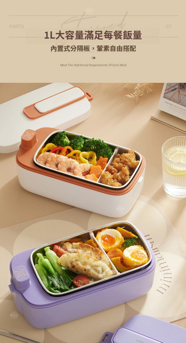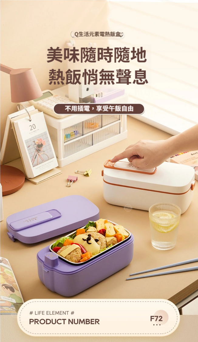 生活元素-【生活元素F72/F79】無線加熱飯盒|1L大容量|免插電保冷保溫|304不鏽鋼內膽|雙重防漏