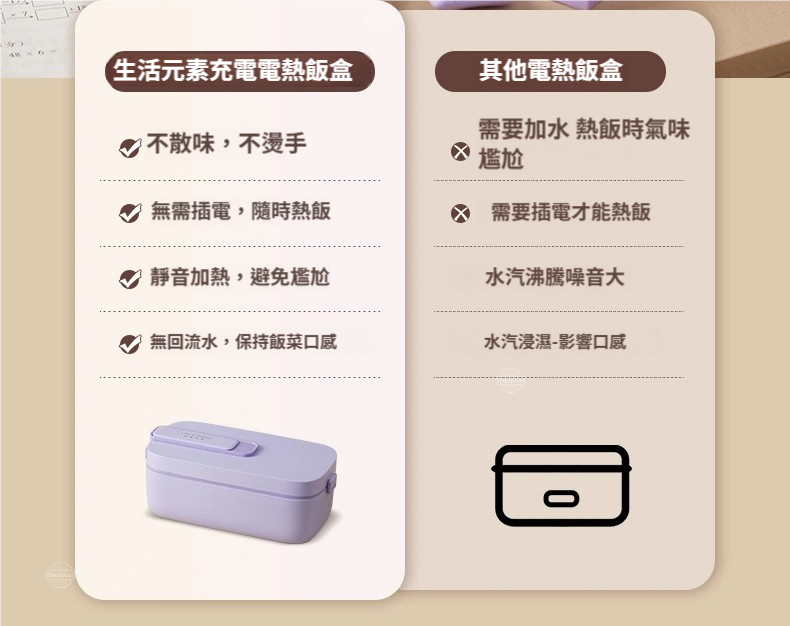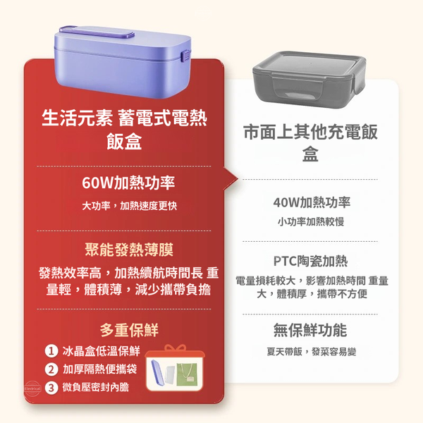• 不插電也能鎖住飯菜新鮮度