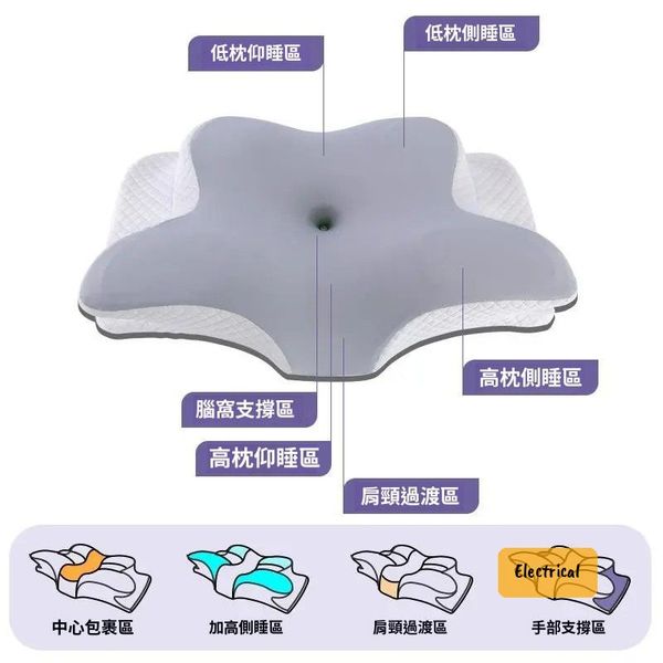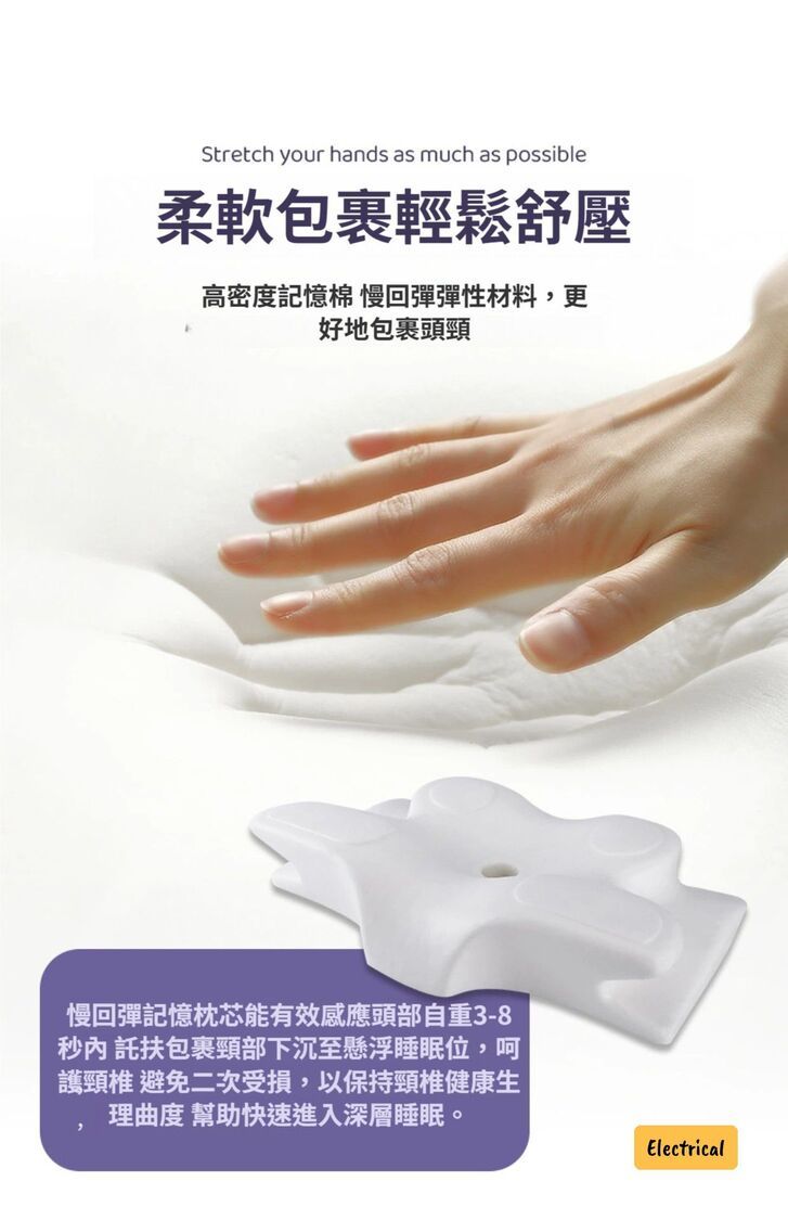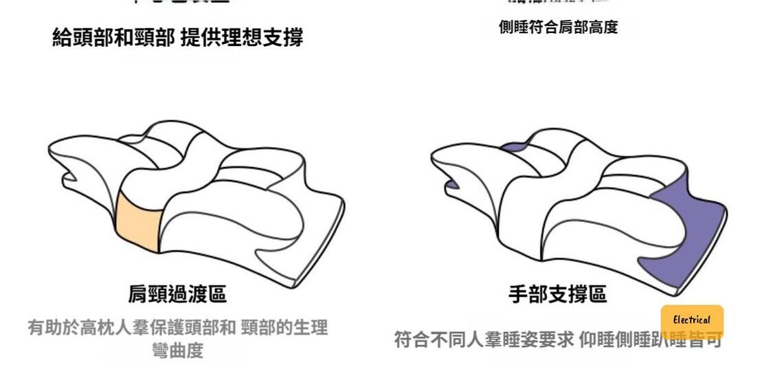 - 分區護頸包括肩頸過渡區同手部支撐區,瞓覺時手有地方放,醒咗手唔會麻。