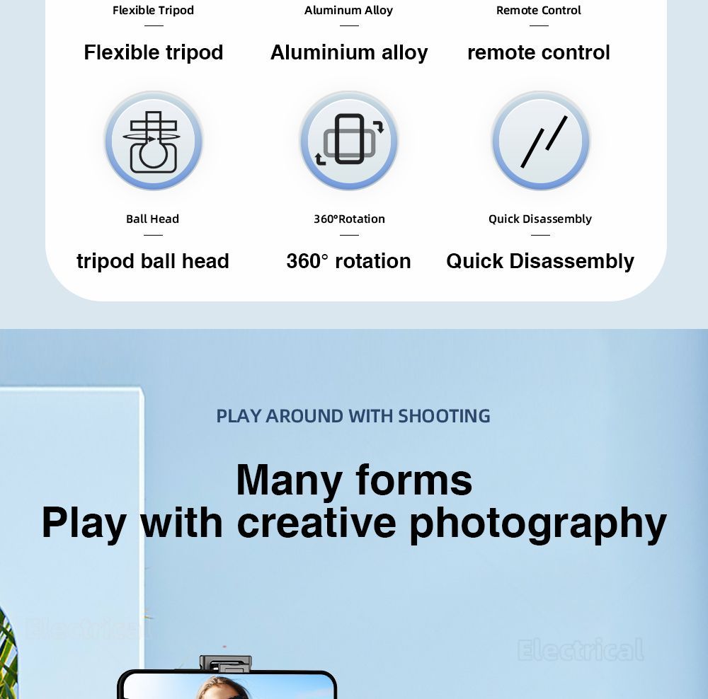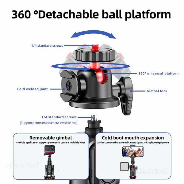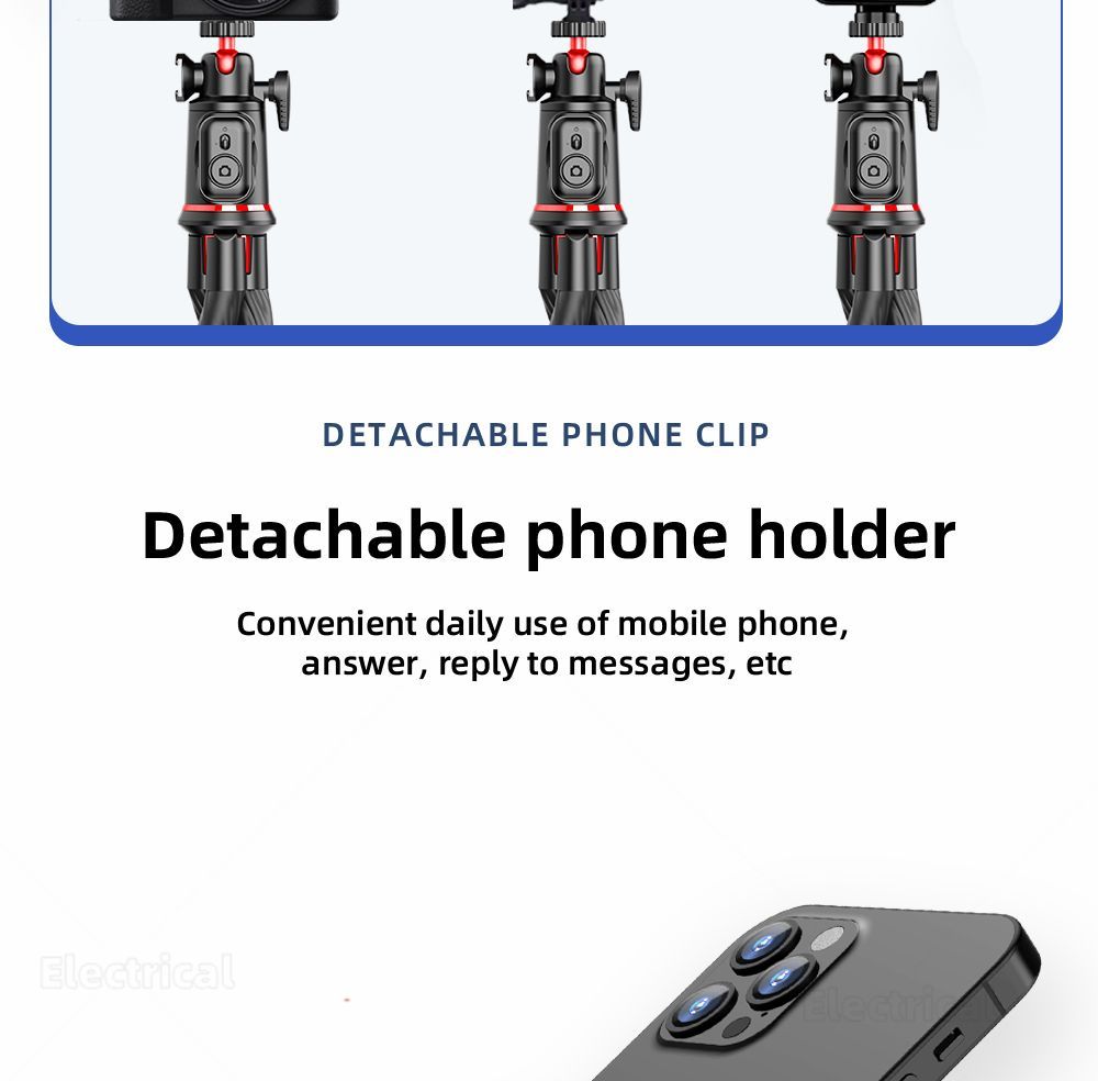 - 兼容手機(65-95mm)、運動相機、單反配件(1/4"標準螺絲)