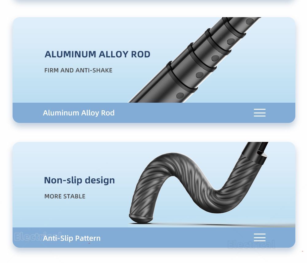 - 加粗鋁合金桿(638mm長),防滑坑紋設計
