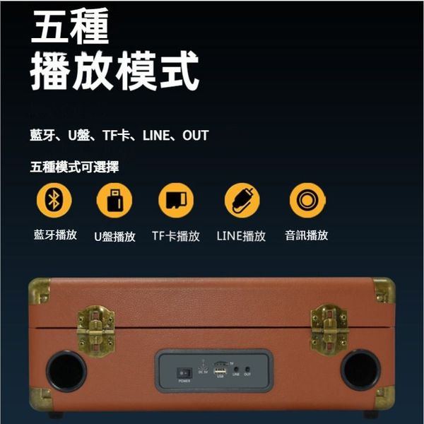 5種播放模式,藍牙、USB、TF卡、LINE、OUT