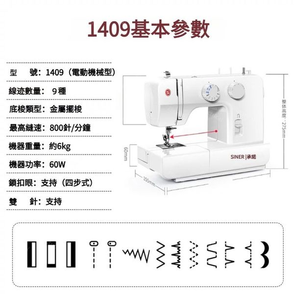 Singer-勝家牌 1409 家用縫紉機 台式 大功率 HEAVY DUTY 臺式 吃厚型 多功能 SEWING MACHINE