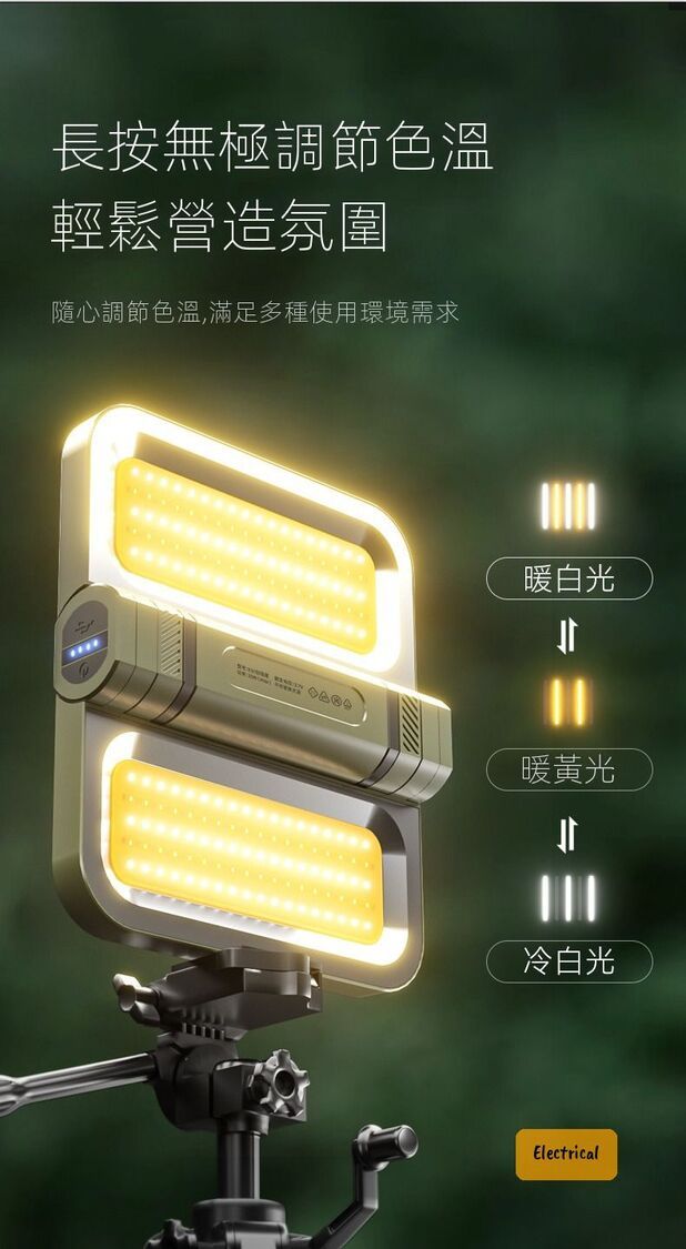 - 長按無極調色溫(暖黃光至白光自由切換)