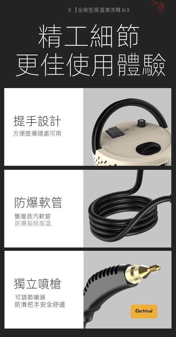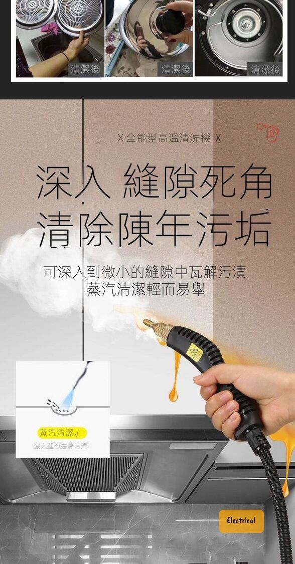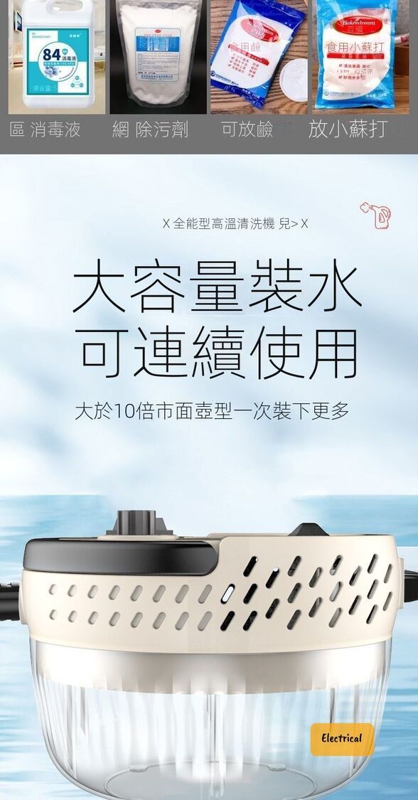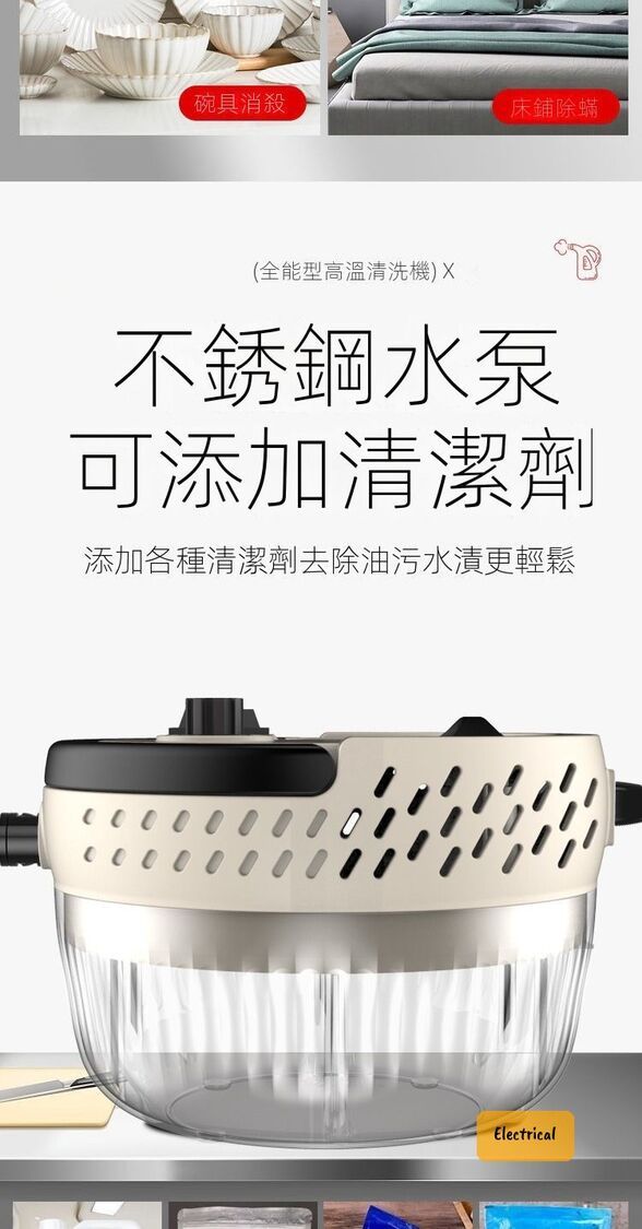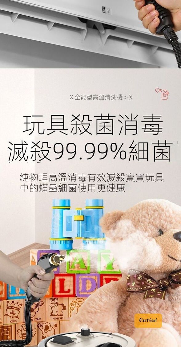 - 105°C高溫蒸汽,快速溶解油污,殺菌除蟎99%。