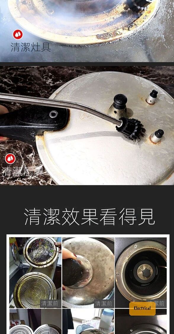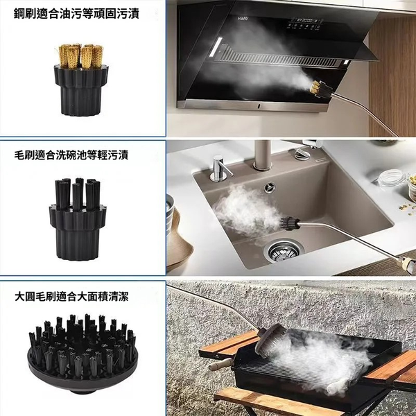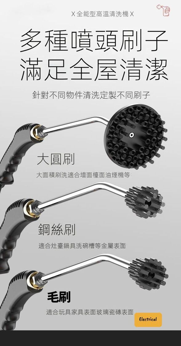 - 配備多種刷頭:鋼刷適合頑固污漬,圓刷適合大面積清潔。