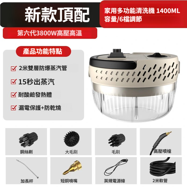 日本暢銷-多功能高溫蒸汽清洗機|1400ML大容量|6檔調節|殺菌除蟎99%