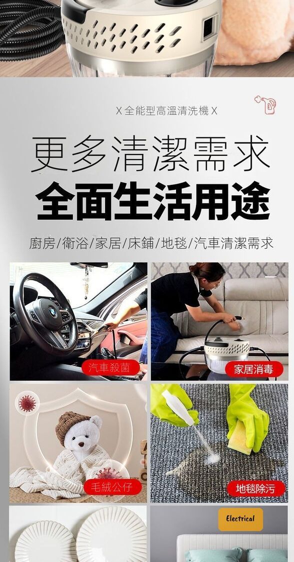 - 汽車:清潔內飾,消除細菌。