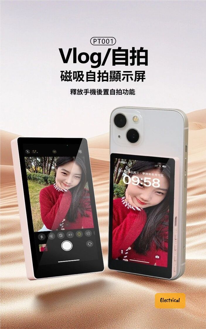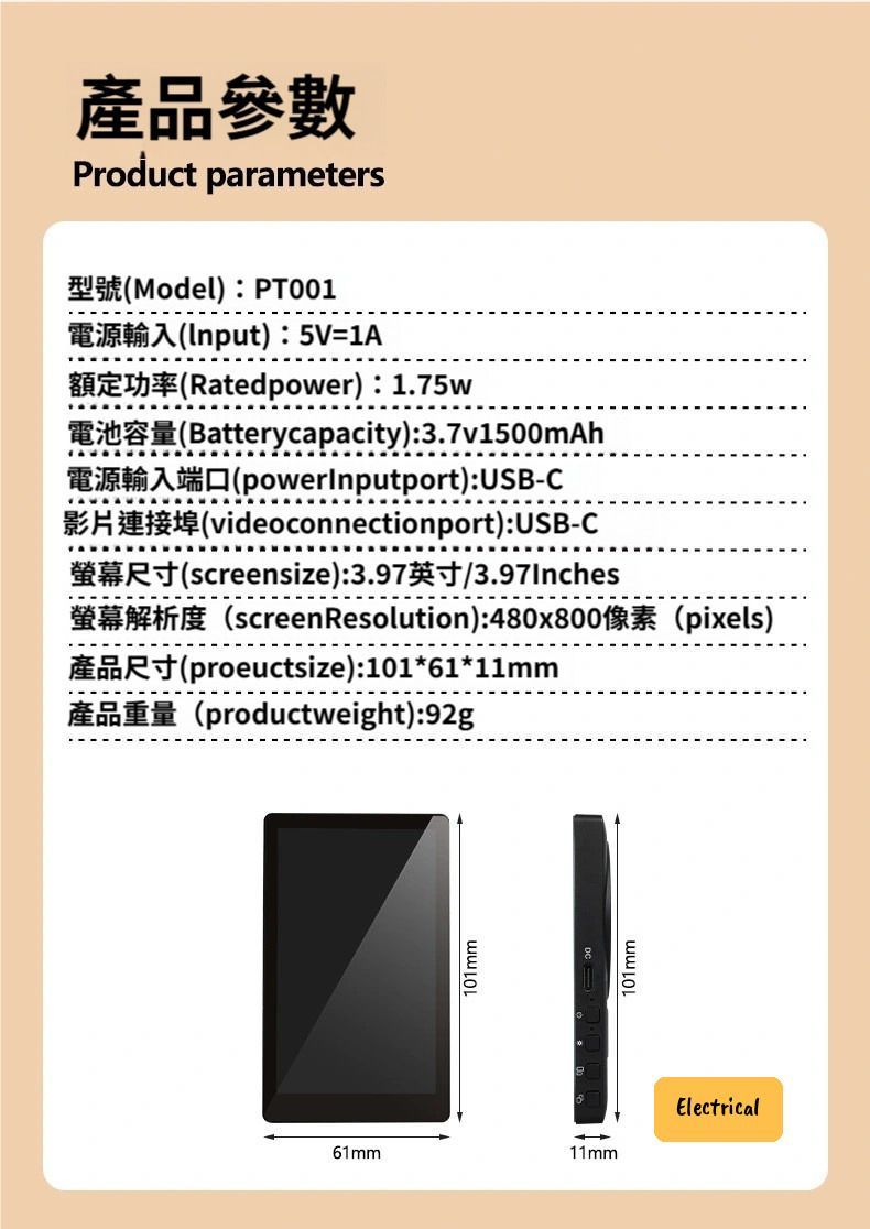 - 3.97吋高清螢幕,解像度480x800,實時顯示畫面,自拍拍片都清晰。