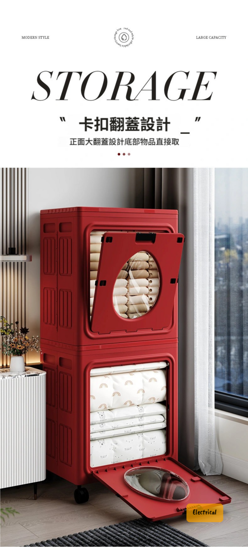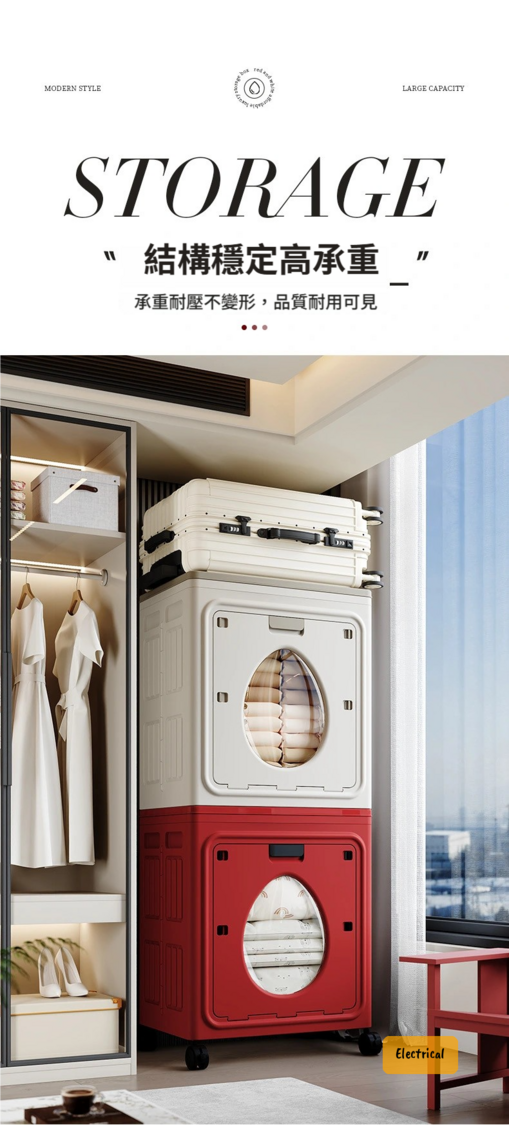- **可堆疊,穩固唔搖晃**:箱體結構實淨,四腳設有特別嘅槽孔,上下堆疊時可以互相扣實,即使疊高幾層都穩穩陣陣,唔怕倒塌,善用垂直空間。