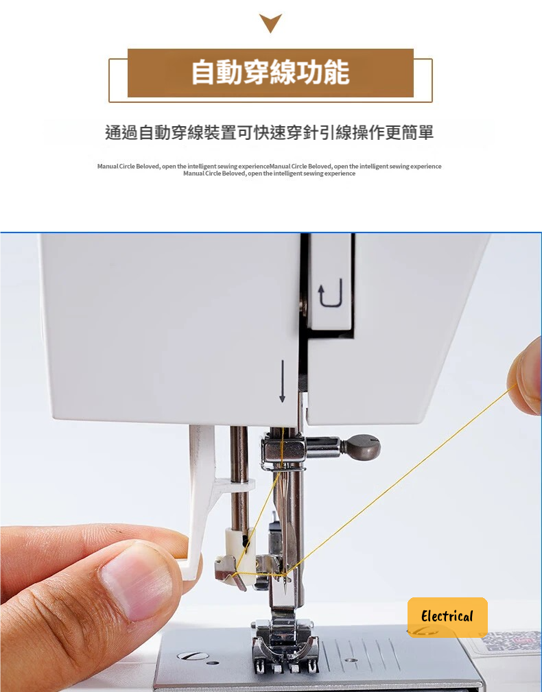- 自動穿線系統:一按自動穿線,新手同長者都輕鬆使用,唔使再為穿針煩惱