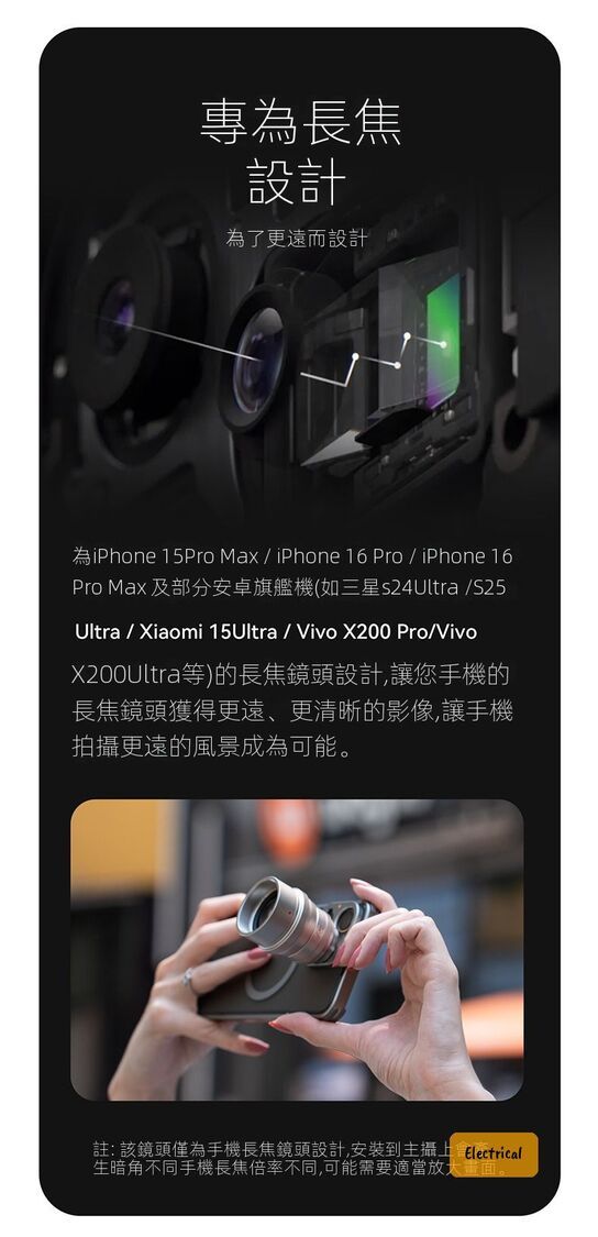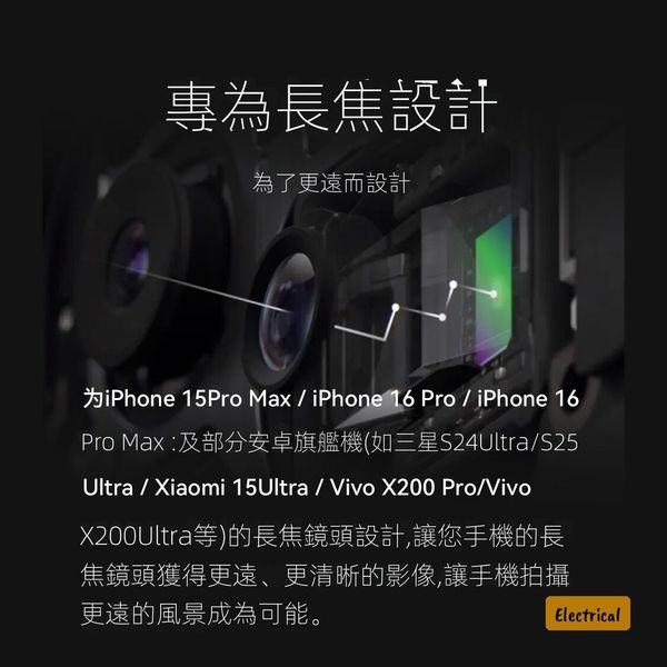 - 兼容機型:iPhone 15 Pro Max/16 Pro/16 Pro Max、三星S24 Ultra/S25、VIVO X200 Ultra、小米15 Ultra等旗艦機