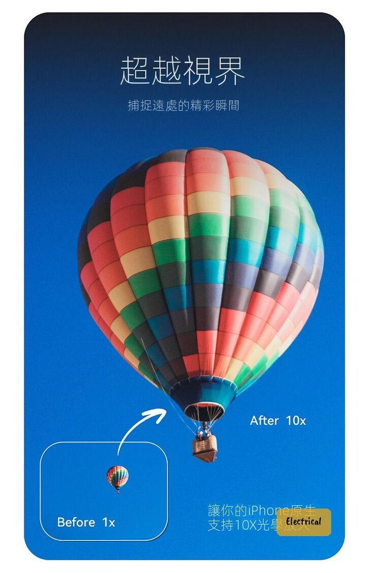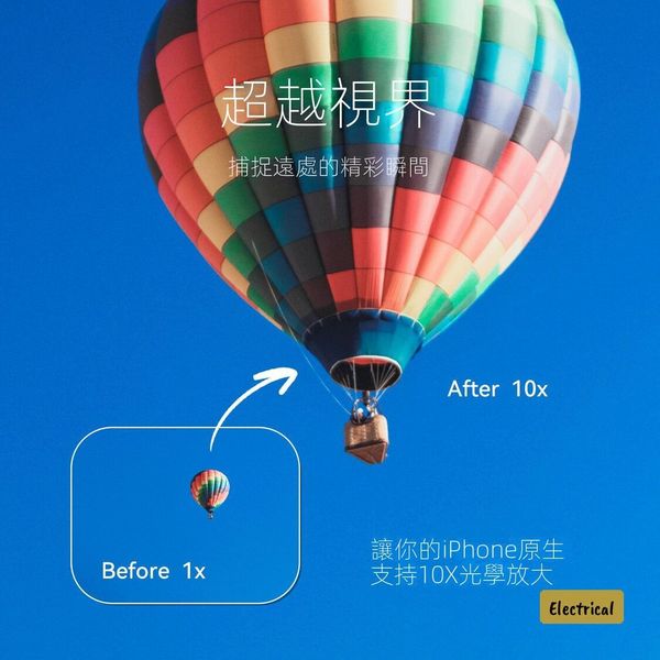 - 2X增倍鏡讓5X長焦升級至10倍光學變焦,影得更遠更清晰
